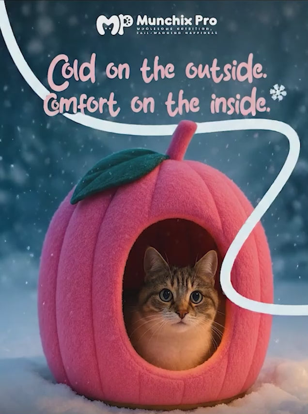 A snug, pumpkin-shaped bed for cats and small puppies, crafted for warmth, comfort, and a sense of safety. Soft plush interiors and a playful design make it a favorite spot for rest and quiet play.